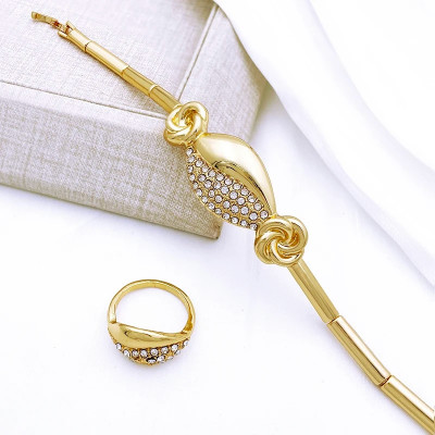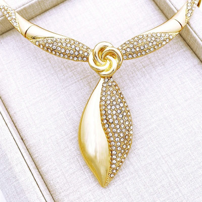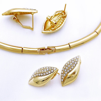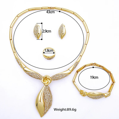 طقم مجوهرات فاخر مطلي بالذهب – تألقي بأسلوب راقٍ وفخم أضيفي لمسة من الأناقة والفخامة إلى إطلالتك مع هذا الطقم الذهبي الفاخر المستوحى من التصاميم الإيطالية الراقية. يتميز بتصميم عصري على شكل قطرة ماء مرصع بالكريستال المتلألئ، مما يجعله خيارًا مثاليًا للحفلات والمناسبات الراقية.